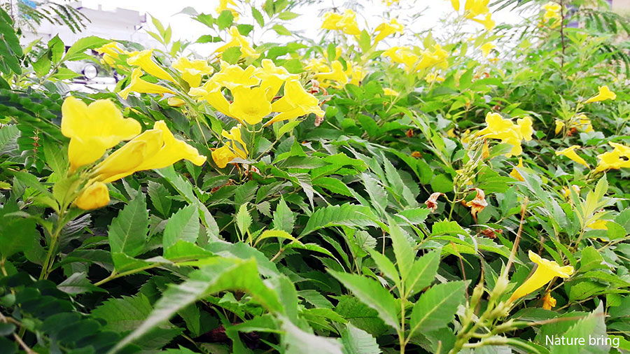 Common name: Yellow Bells, yellow trumpet shrubs, Trumpet Flower, and Yellow Elder